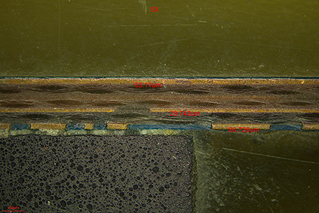 ●PCB切片分析,需要先將pcb切片,然后鑲嵌制樣,通過顯微鏡測量PCB每層厚度