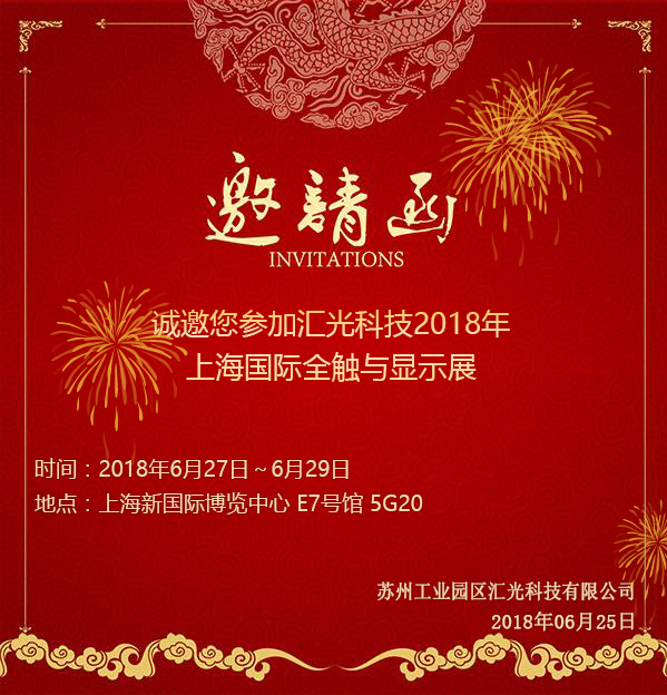 蘇州工業(yè)園區(qū)匯光科技有限公司將參展2018上海國(guó)際全觸與顯示展